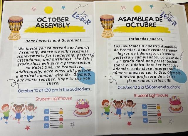 Student Awards Assembly Friday, October 10 @ 1:30 p.m. Auditorium